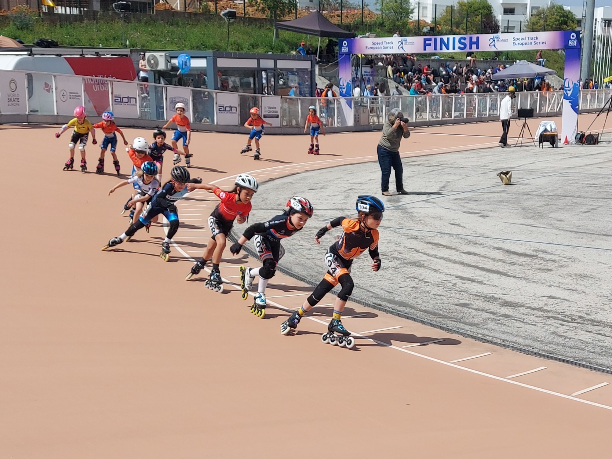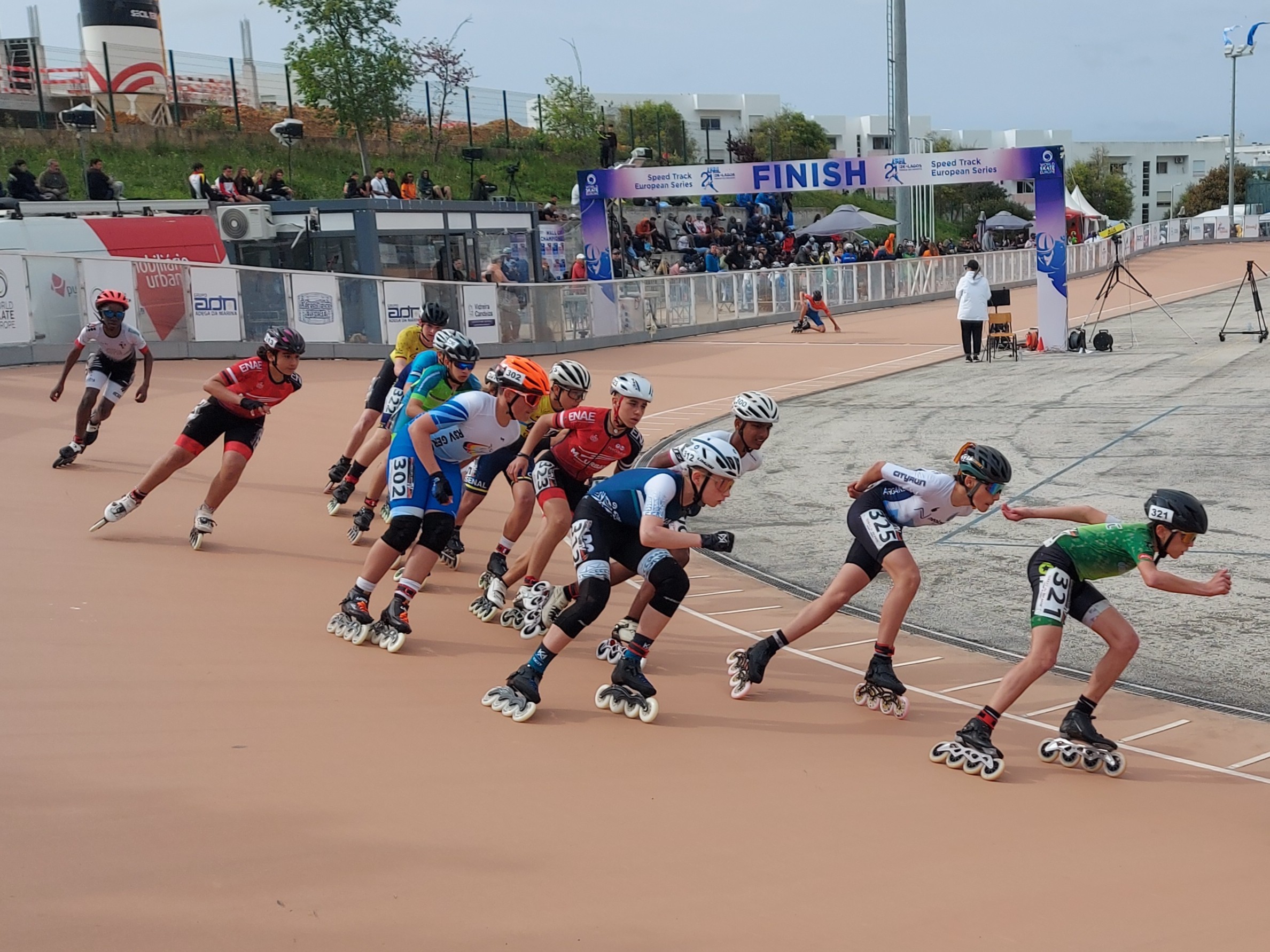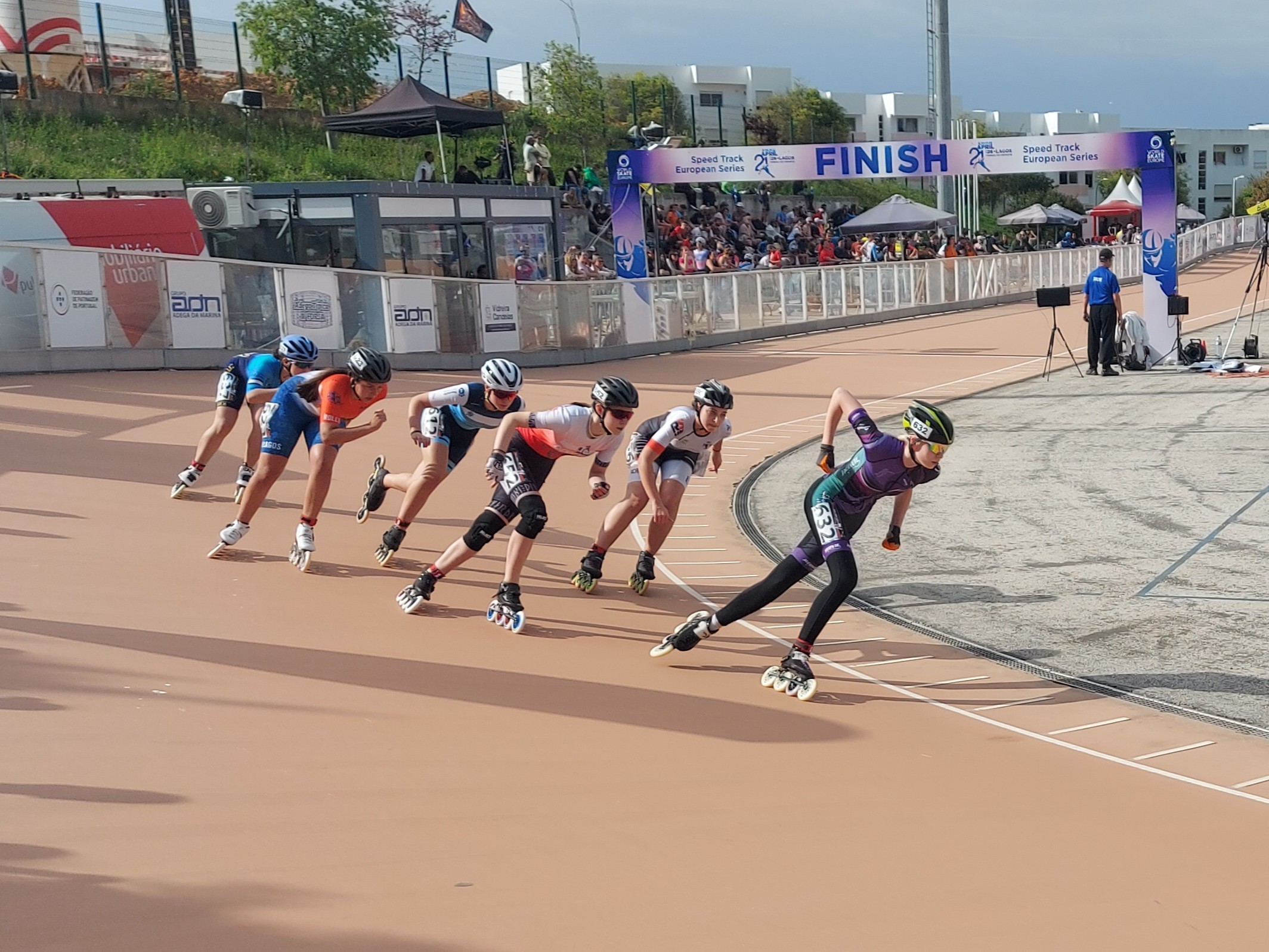 Am Donnerstag starteten die Wettbewerbe mit den Sprintausscheidungen über 500m erst am späten Nachmittag, so konnte in Ruhe gefrühstückt werden und dann ging es für die einen in den Zoo und für die anderen zum Sightseeing und shoppen nach Portimao. Gegen 18 Uhr war es dann so weit. Rund 650 Sportler aus 20 Ländern waren gemeldet und mit südländischem Temperament wurde der Europacup eröffnet. Die Senioren ließen es über die 500m gleich mal so richtig krachen und sprinteten schon im Vorlauf zu einem neuen Bahnrekord! Das sorgte für die richtige Stimmung an der Strecke. Bei den Kadetten durfte jetzt Luca an den Start und wir hatten aufgrund seiner Qualifikation für das Viertelfinale Grund zum Jubeln. Nun zog sich der Himmel leider immer mehr zu und nahm ein bedrohliches Aussehen an. Kurz vor Amélie ihrem Start bei den Juniorinnen fielen die ersten Regentropfen und die Rennen wurden unterbrochen. Normalerweise „Améliewetter“, Regenrollen drauf und los geht´s, aber nicht auf Vesmaco Belag. Der Regen wurde stärker und damit der Wettkampftag abgebrochen.
