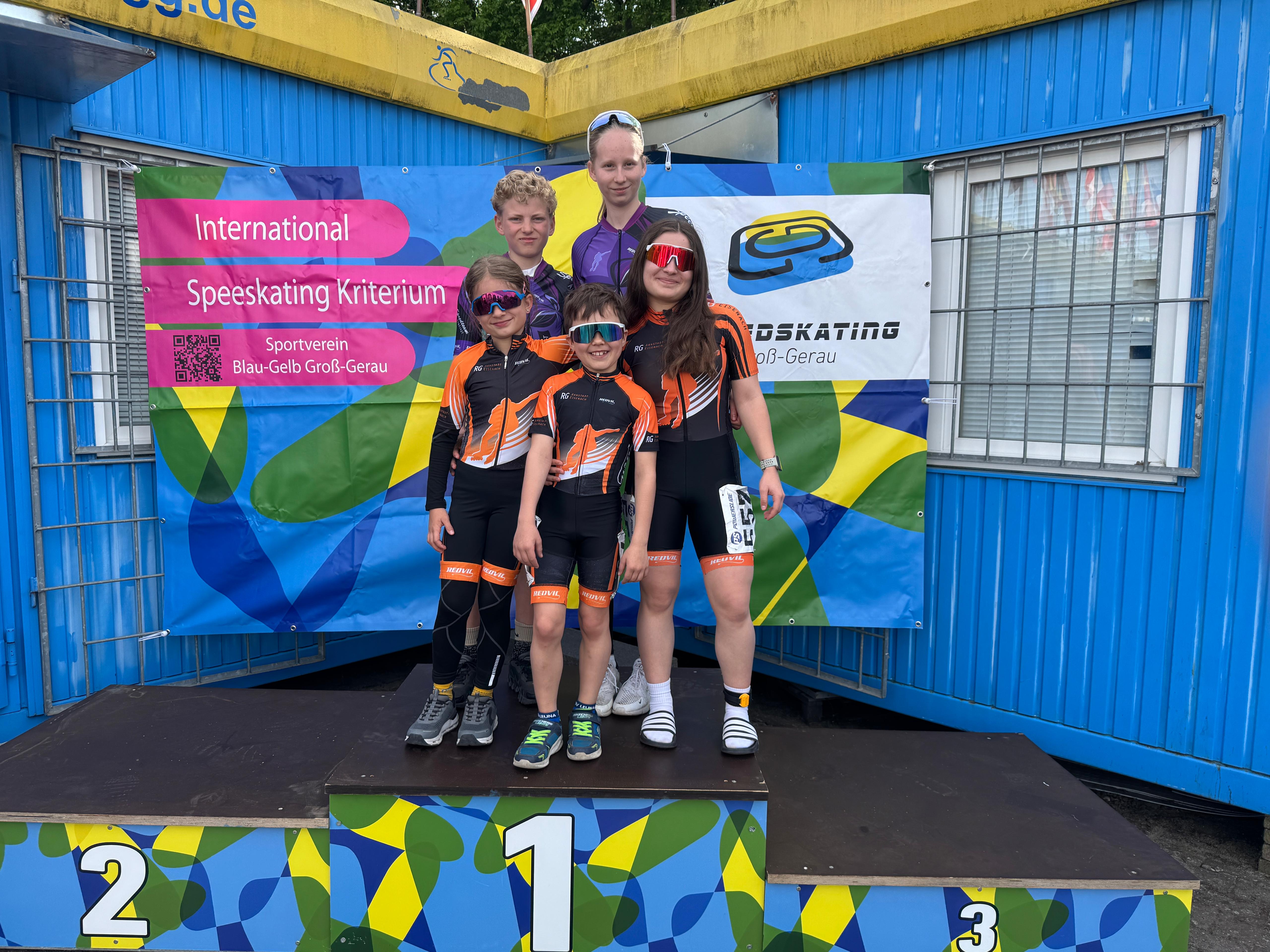 Beim 48. Internationalem Kriterium in Gross-Gerau war in diesem Jahr unser gesamter Europacup Kader am Start. Maja, Emil, Charlotte und Amélie starteten für unseren Speedskating Arnstadt und Luca trat für das MANAO Future Team an. Bereits am Donnerstag, dem 23.04., ging es für die Ersten direkt von der Schule ab auf die Autobahn und los zur Bahn mit den vier Kurven. Ohne größere Probleme erreichten wir Gross-Gerau. Ein Platz für unser Bahnzelt zu finden, erwies sich dagegen als die größere Herausforderung. Zum Glück hatte der SCC Berlin ein Flecken für uns übrig und so konnten wir uns doch noch direkt an der Bahn einrichten. Danke nochmal!