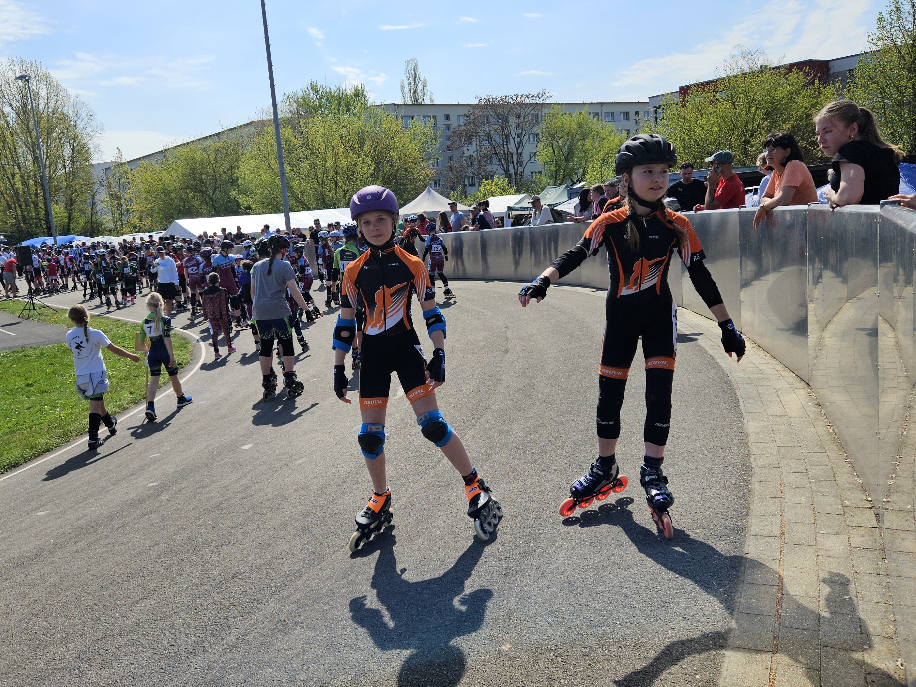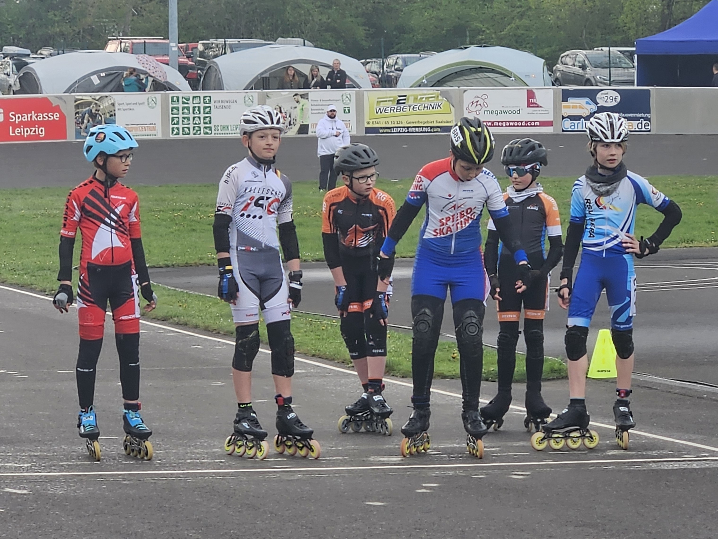 Nach dem Saisonauftakt in Erfurt hieß es am 18. und 19.04. auf zum zweiten SaThü Wettkampf der Saison. Diesmal unter freien Himmel. Aufgrund der Ferien und des zeitglich stattfindenden AGI in Geisingen, nicht ganz vollzählig, ging es am Sonnabend früh – nein, ganz früh, auf nach Leipzig. Problemlos erreichten wir die schöne Skateanlage im Leipziger Norden und nach dem Zeltaufbau und der Startnummernverteilung begann das Üben der Parcours. Gerade für die B-Schüler erwies er sich stellenweise als anspruchsvoll. Umso wichtiger war das ausgiebige Testen. Hier gelang es Fabi und Maja am schnellsten um alle Hindernisse zu wuseln. Es zeigte sich, dass nicht nur Focus auf Fehlerfreiheit, sondern auch das flüssige Laufen um alle Hindernisse, die entscheidenden Faktoren sind, um am Ende die Geschicklichkeitsstrecke am schnellsten zu absolvieren. Aufgrund des vorhergesagten schlechten Wetters für Sonntag folgte die erste Planänderung. Die Parcours der A-Schüler wurden vorgezogen, die Telefone glühten, um sicherzustellen, dass alle Sportler rechtzeitig am Start sind.